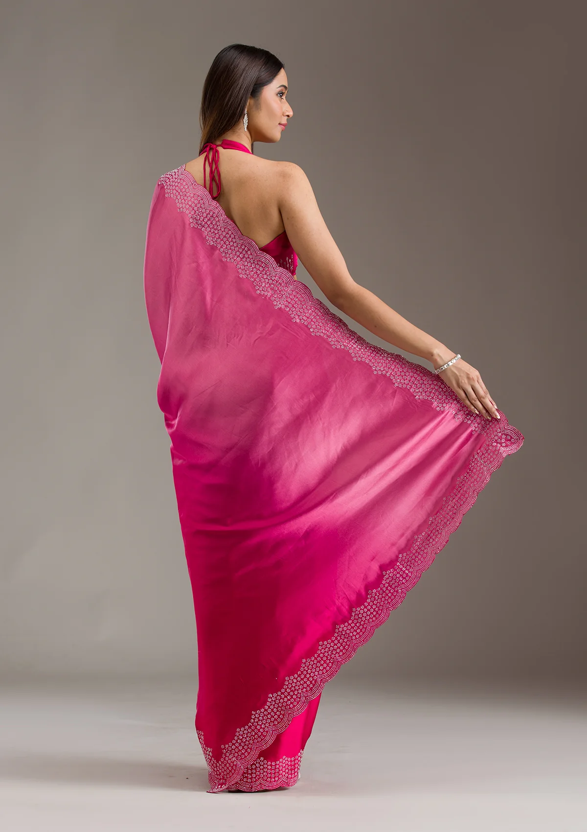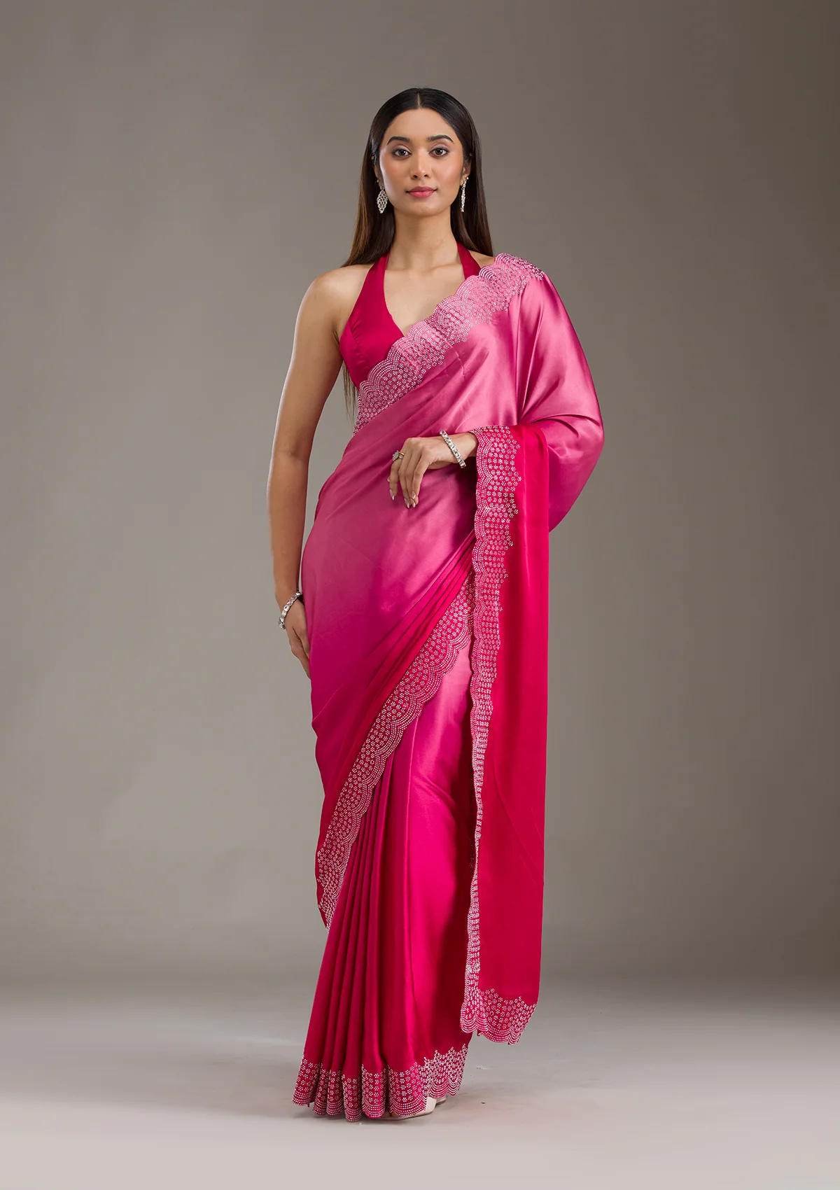 Rani Pink Swarovski Satin Saree